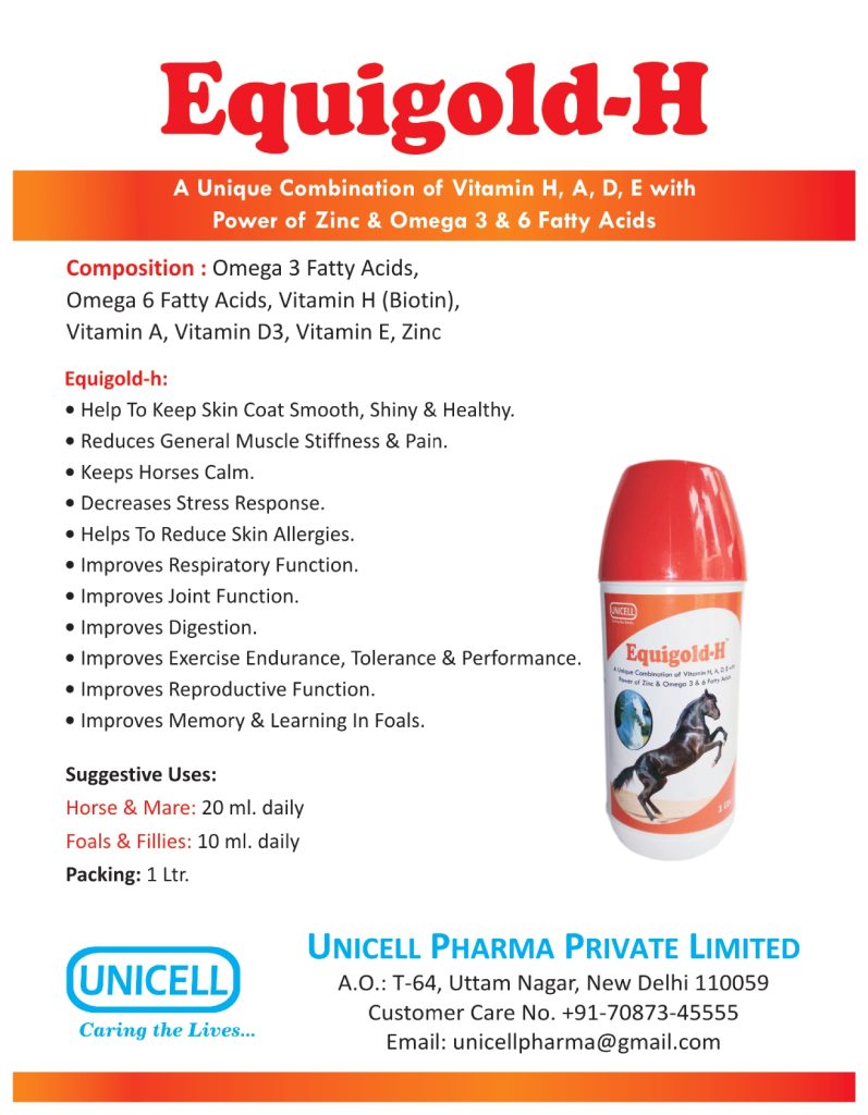Unicell Equigold-H is a unique combination of Vitamins H,A,D,E with power of zinc, Omega3 and Fatty Acids..